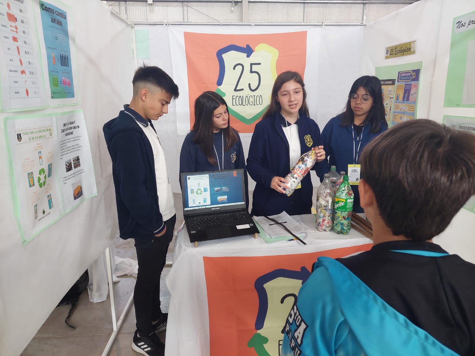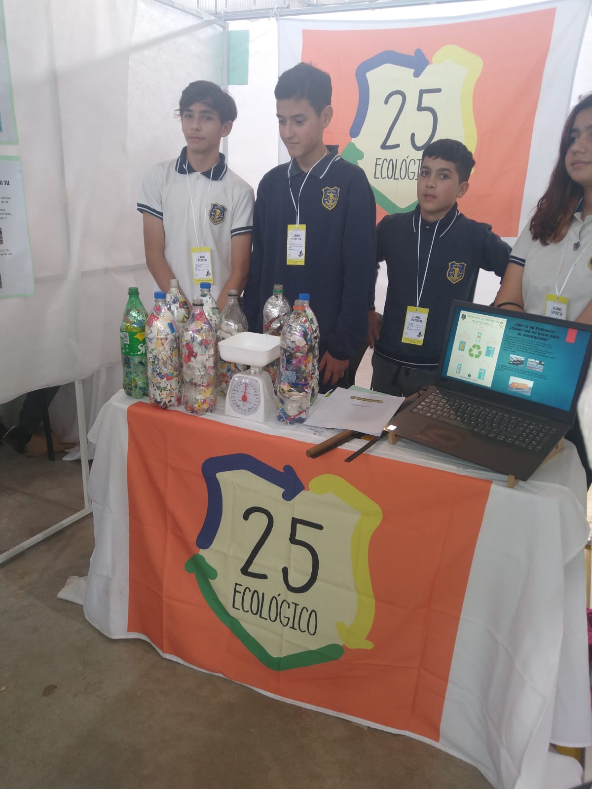 El Proyecto: "25 Ecologico". Elaboración de ecoladrillos con residuos plásticos no reciclables de un solo uso, para construcción de ecobancos, obtuvo el 2° puesto.